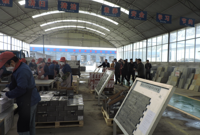 盧卡.貝隆先生對我司的文化石很感興趣,并駐足幾分鐘參觀我司的產品包裝質檢流程。