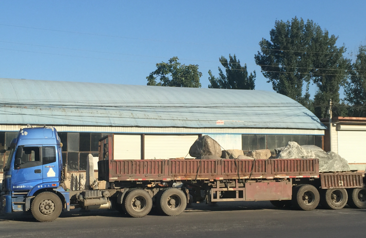 公司給天津中醫藥大學出景觀石現場,后述圖片是送到現場擺放圖。