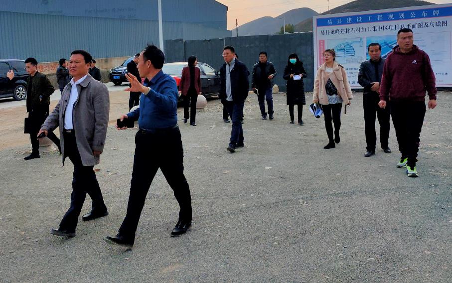 10月28日下午2點半,縣委書記劉杰、縣長張銳、常務副縣長李躍華丶縣委常委縣委辦公室主任郝衛國等領導率領相關部室負責人實地考察龍峰(綠色)建材園區建設項目,查看項目進展情況,現場為企業解決困難,龍山石材耿立新總經理全程陪同。
